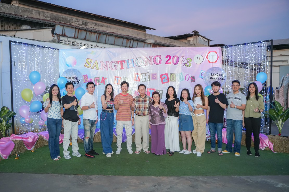 วันที่ 14 มกราคม 2566 ตั้งแต่เวลา 18.00 น. ที่ผ่านมา บริษัทฯ ได้จัดงานเลี้ยงสังสรรค์ประจำปีในตรีมงาน "Sangthong 2023 Back to the 2000s Party" ซึ่งบรรยากาศภายในงานเต็มไปด้วยความสนุกสนาน เฮฮา อีกทั้งในวันนั้นยังเป็นวันครบรอบวันเกิดของท่าประธาน คุณชากร ภัทรเสถียรกุล ซึ่งปีนี้ท่านมีอายุครบ 82 ปีบริบูรณ์ เหล่าลูกหลานและพนักงานจึงได้ร่วมแสดงคำอวยพรวันเกิดให้กับท่านประธานกันอย่างอบอุ่น