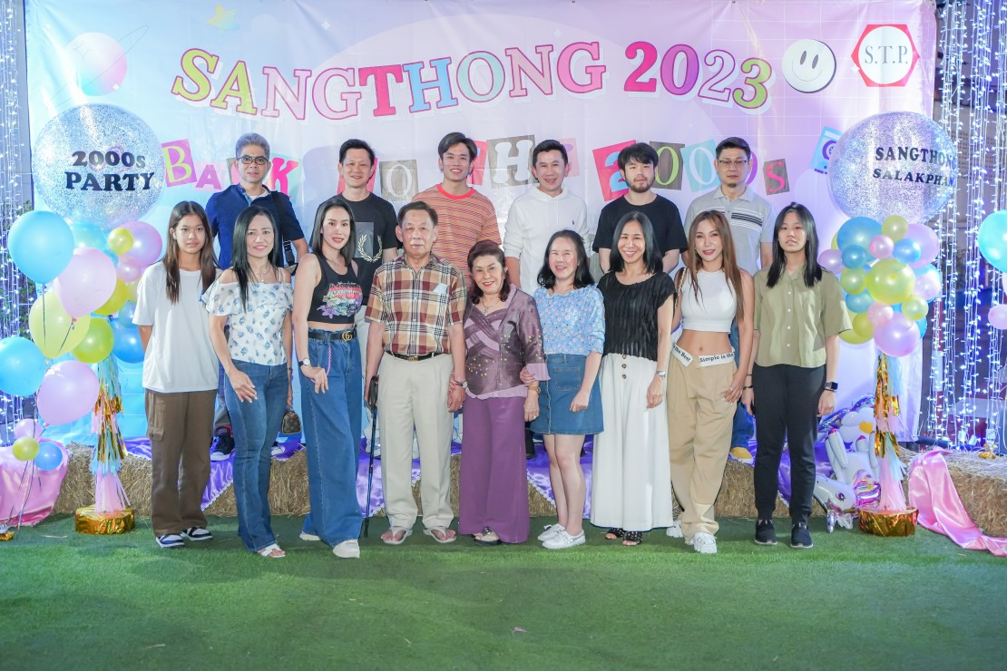 วันที่ 14 มกราคม 2566 ตั้งแต่เวลา 18.00 น. ที่ผ่านมา บริษัทฯ ได้จัดงานเลี้ยงสังสรรค์ประจำปีในตรีมงาน "Sangthong 2023 Back to the 2000s Party" ซึ่งบรรยากาศภายในงานเต็มไปด้วยความสนุกสนาน เฮฮา อีกทั้งในวันนั้นยังเป็นวันครบรอบวันเกิดของท่าประธาน คุณชากร ภัทรเสถียรกุล ซึ่งปีนี้ท่านมีอายุครบ 82 ปีบริบูรณ์ เหล่าลูกหลานและพนักงานจึงได้ร่วมแสดงคำอวยพรวันเกิดให้กับท่านประธานกันอย่างอบอุ่น